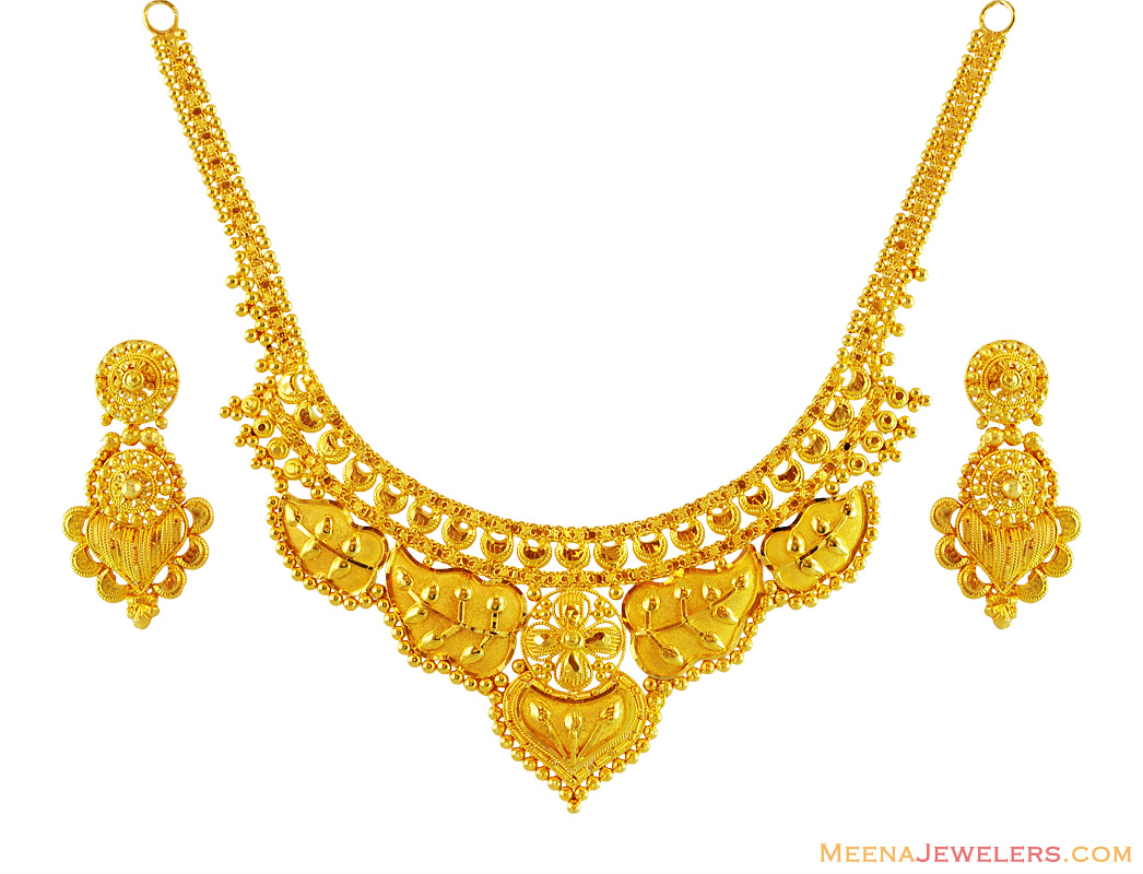 22kt (916) yellow gold gold necklace for women. Nevertheless, the necklace alone stands buy indian gold jewelry in 22k gold like rings, chains, bracelets, vaddanams, arm vankis, pendents, necklaces, bangles, earrings, sets, kadas. Traditional 22k spike shaped gold necklace set with earrings. Whatever you're shopping for, we've got it. You can the jali 22ct gold filigree necklace is a simple, everyday option with classic indian design and a more casual look.