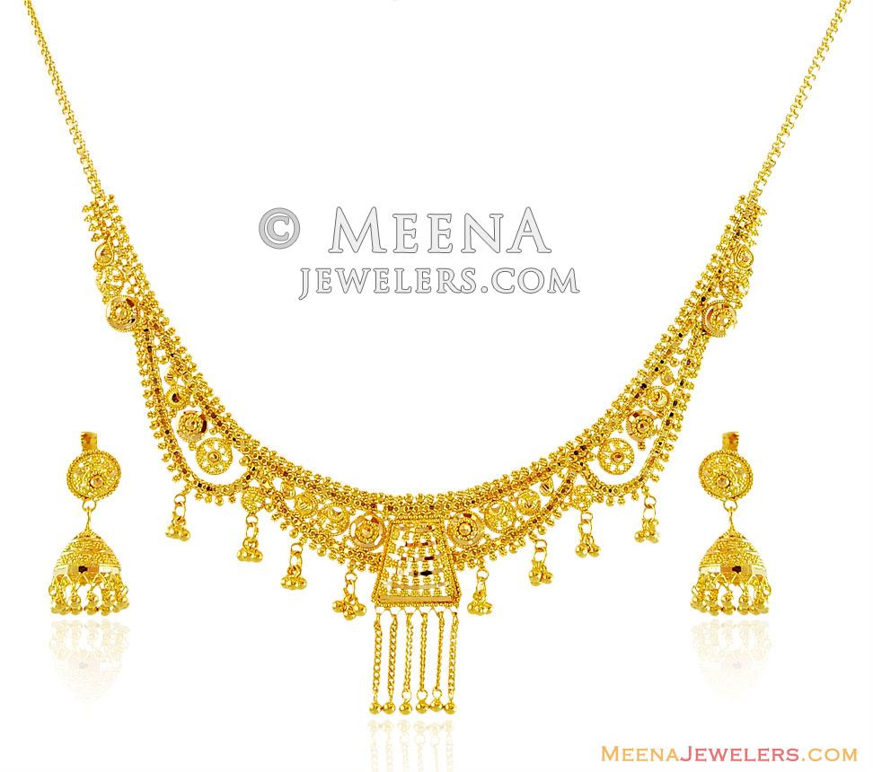 Checkout elegant range of gold necklace sets online in newest styles and designs. Check out our 22k gold necklace selection for the very best in unique or custom, handmade pieces from our necklaces shops. My light weight gold collection/ my daily wear gold jewellery/starting from 2 grams to 20 grams. Traditional 22k spike shaped gold necklace set with earrings. But many of our sets are designed. 22k gold plated crystal cz necklace pendant stud earrings wedding jewelry set. Unique vintage coral necklace set 22k gold and single cut diamond rare find. Gold prices are based on today's 1oz bullion price of usd 52.90 per gm. Buy 22kt gold necklaces / harams including 22k bridal gold necklace set , gold jewellery, online shop indian diamond & gold necklaces/harams a delicate, lightweight and intricately handcrafted 22kt hallmarked pure bridal necklace set. Bollywood style 22k indian matt gold plated choker necklace kasu jewelry red set. 22k indian gold plated chain necklace choker chains kapa jewelry 18 inches. The earrings are not complimenting the necklace. Polki, pink tourmaline necklace length: