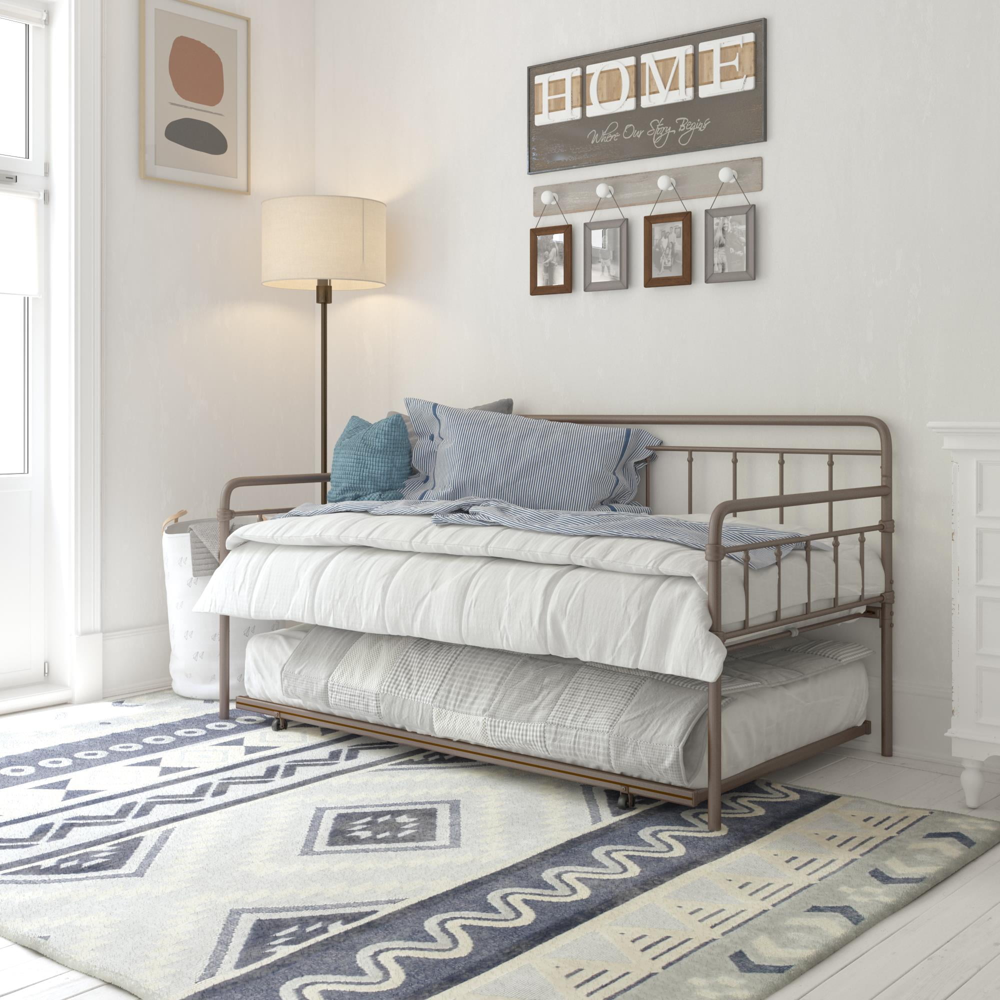 Fenwick oil rubbed bronze metal twin daybed bed with trundle (80.25 in w. Create more play space with a bunk bed or trundle bed with storage drawers. A wheeled trundle bed underneath provides spare sleep space if you have multiple overnight guests. Daybed is not designed to be used without a slipcover. Dhp victoria can use for both seating and sleeping. It's made with a tubular metal frame and features an openwork design with slender spindle accents for a farmhouse and approachable look. Shop for daybed bedding online at target. Frame is crafted of solid hard wood and covered in muslin fabric. A solid finish helps this piece blend with a variety of color palettes and. Turn your home office, guest room, or living room into a guest room with this daybed. Kids' & toddler beds : Offering a wide variety of home furniture at the best value to local and international dealers. Metal daybed frame twin metal slats platform base box spring replacement bed sofa for living room guest room (twin, black sanded) 4.3 out of 5 stars 181 $145.99 $ 145.