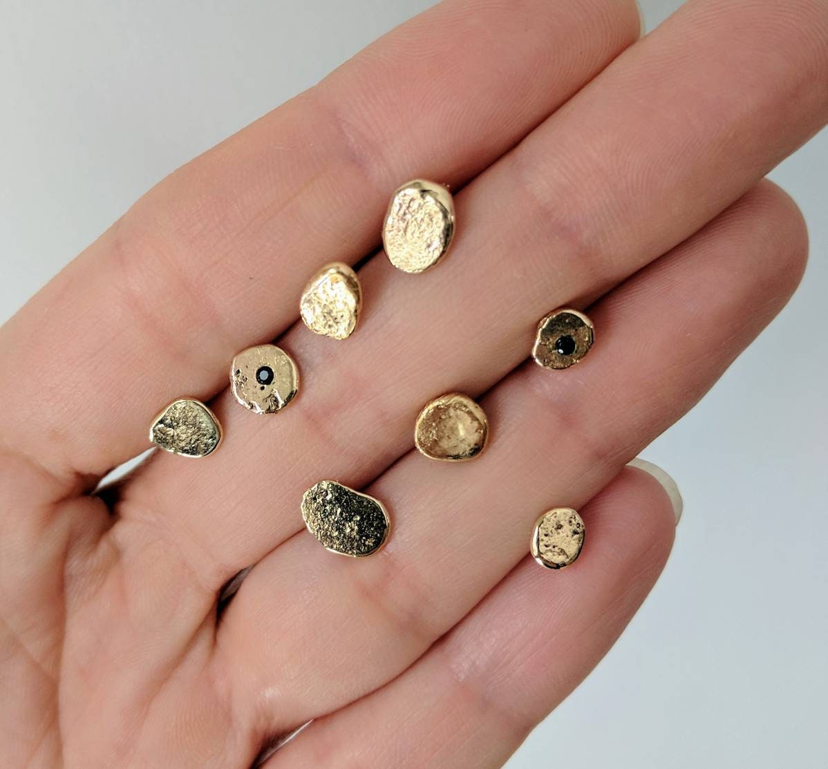 Recycled solid 10k gold nugget earrings. Handmade stud | Etsy from i.etsystatic.com 10k solid gold 13mm by 10mm. This shiny sparkling nugget earrings has a 10k stamp. Each earring is smaller than a dime. Great savings & free delivery / collection on many items. 10k yellow gold textured hoops hoop earrings 22mm. Plump natural california gold nugget jewelry grade. 10k stone cross hoop earrings. Shop gorgeous looks of 10k gold diamond flower cluster earrings from lovebling.