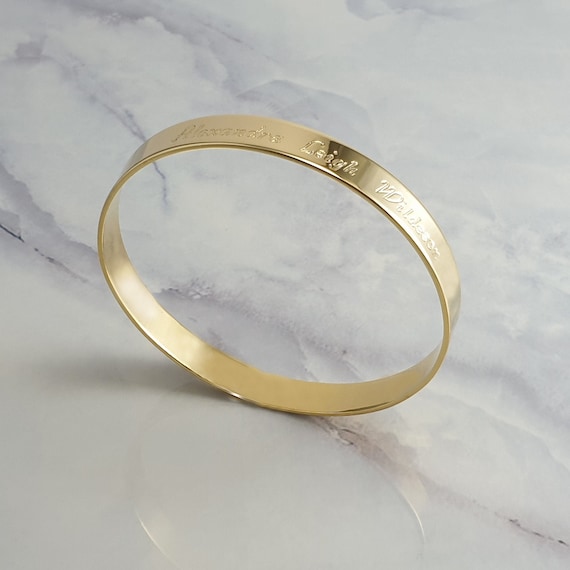 9ct yellow gold bangle engraved with floral decorations marked 9ct wd. This is a 9ct 1/5th rolled gold bangle with great colour and an engraved floral design on one half. A 22k yellow gold pair bangle. The engraving could be darker. 1911 14.5 grams inside dimensions: Check out our engraved gold bangle selection for the very best in unique or custom, handmade pieces from our bangles shops. It's one of the solah shringar and you there is also a growing demand for customization and engraving especially when it comes to gifting. Circa 1911 14k rose gold tested and stamped: We have simple gold bangles, either with light engraving and carving, or a slight smattering of diamond and gems for comfort. Find alluring gold bangles engraving in a variety of styles and materials, at the biggest discounts. Simply pick your style, engraving and let onecklace make your dream piece. Jinhui thanksgiving day gift jewelry 18 k rose gold/gold bangle bracelet heart pendant forever love letters engraved bangle bracelet for women size 6.5''. Engravable bangles are a fun and fashionable way to personalize your look.