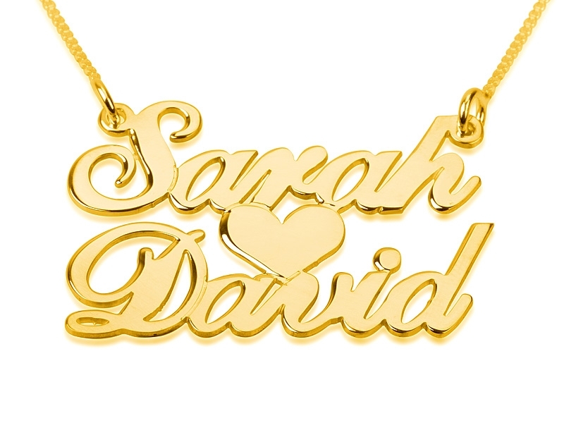 Custom name necklace from namenecklacesaler.com. Get your own custom necklace with any name or word in silver, gold or rose gold! Couples name necklace, 14k gold, classic script with heart. Personalized name necklaces to represent all that is you. Go bold with gold with our personalised gold necklace collection.